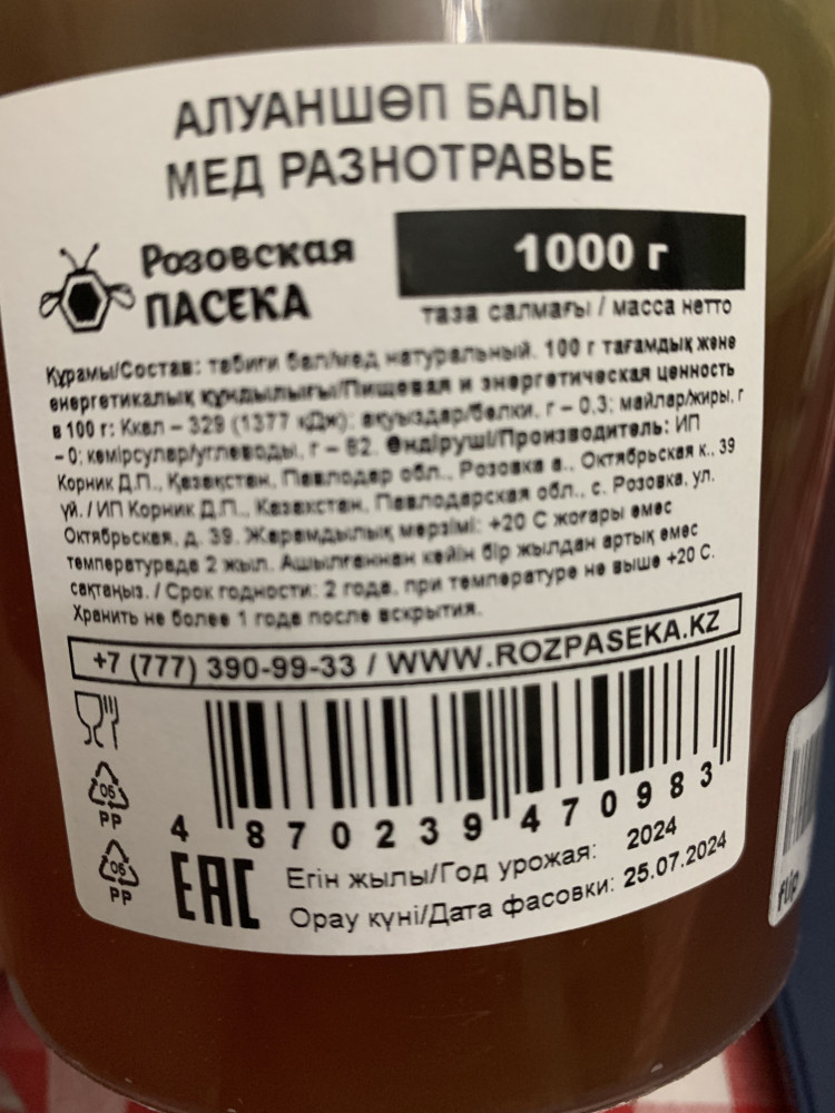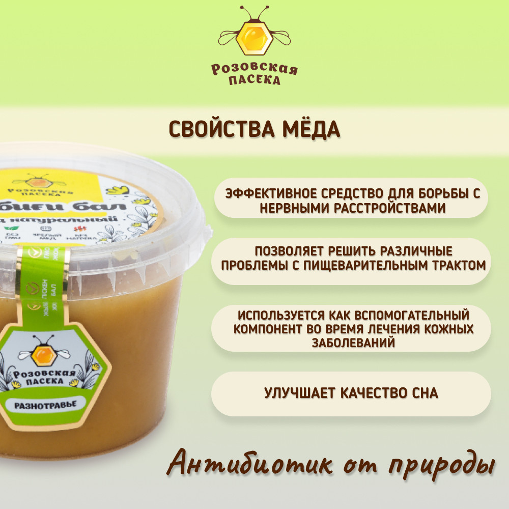 | Розовская пасека Мед натуральный «Разнотравье»+30 (бонусов)