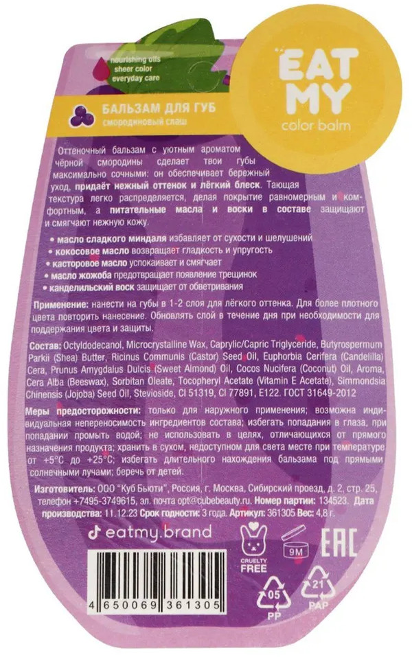 Eat my Бальзам оттеночный для губ «Смородиновый слаш», тон Темно-лиловый