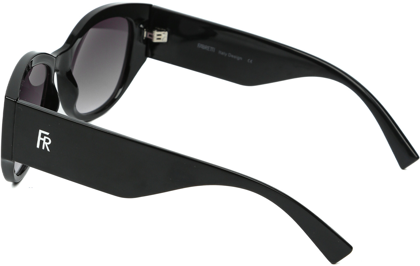 Солнцезащитные очки FABRETTI в черной оправе представляют собой вариацию формы «кошачий глаз». Градиентныеные линзы в сером оттенке позволяют видеть одинаково хорошо как в помещении, так и на солнечной улице. Категория затемнения линз — 3 (комфортно использовать в городе, для вождения, для отдыха на море и спортивных занятий в солнечную погоду). 100% защита от ультрафиолетовых лучей.