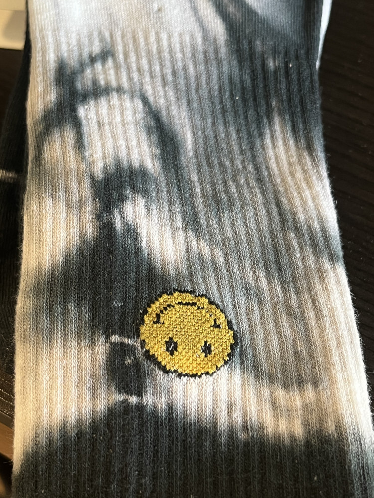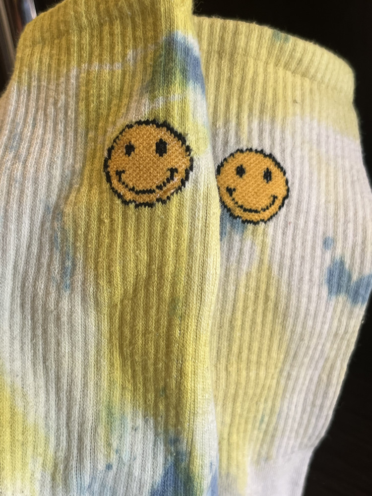 очень классный дизайн, окрашены в стиле тай-дай. при стирке вроде не сильно бледнеют. неплохая цена за набор со скидкой.