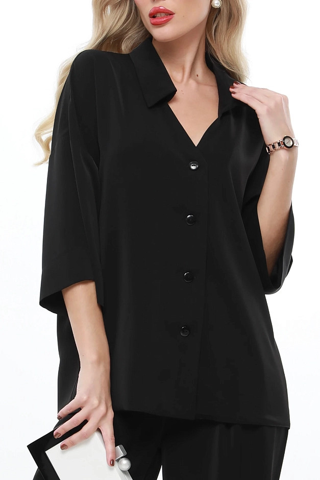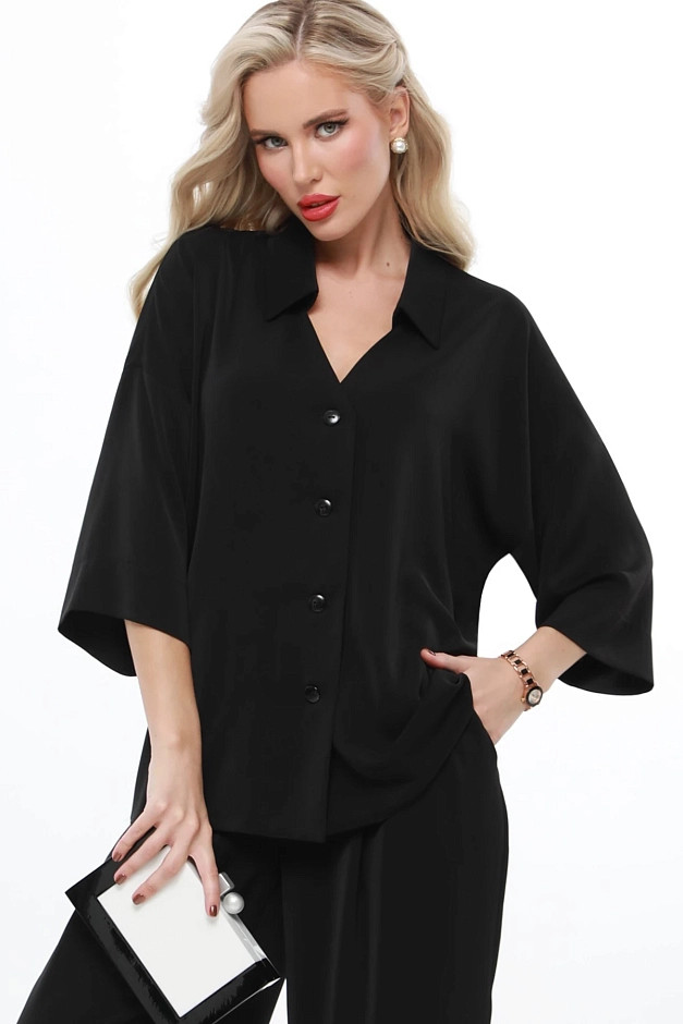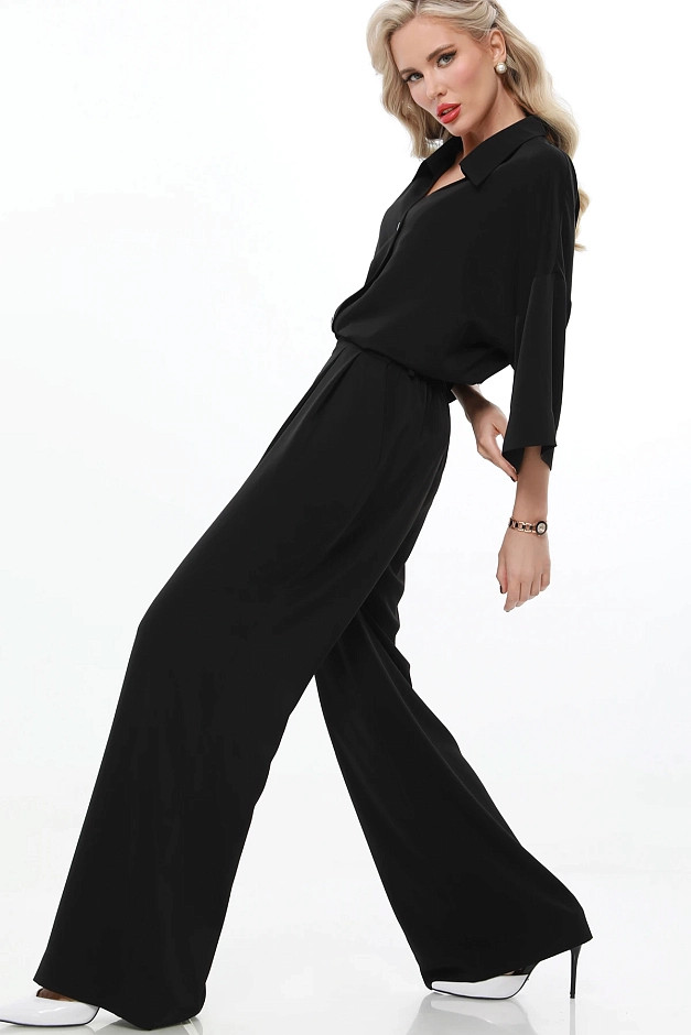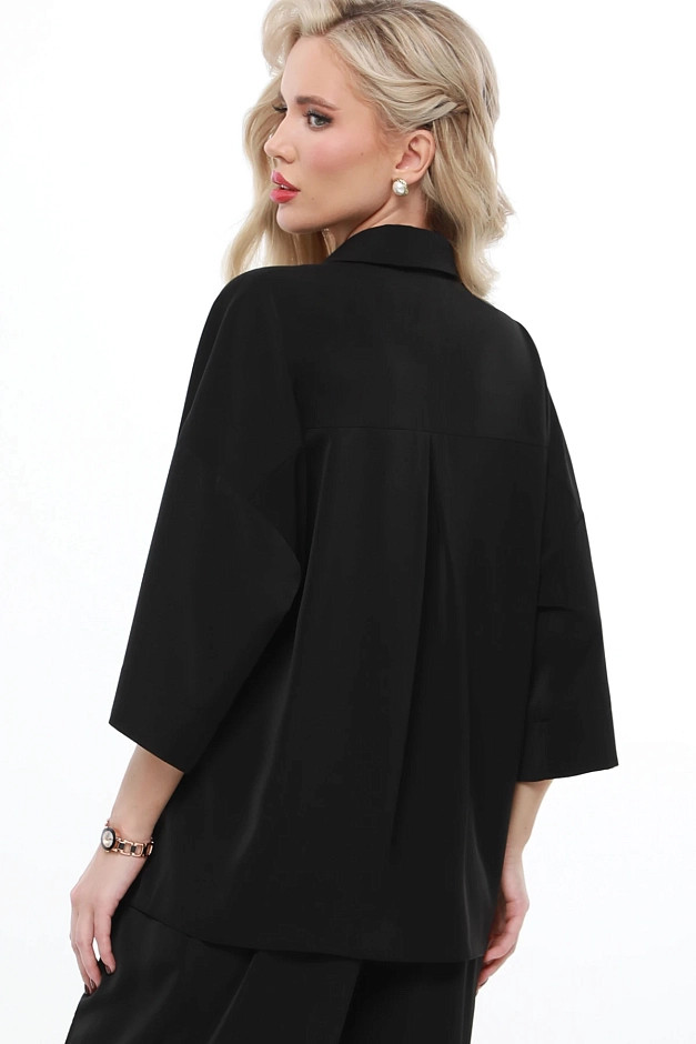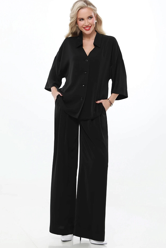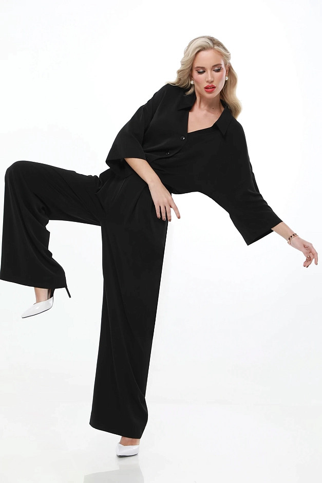 Элегантный и универсальный костюм для любых событий. Блузка с рубашечным воротником и фигурным вырезом горловины придаёт изысканность, а цельнокроеный укороченный рукав создаёт ощущение лёгкости. Брюки прямого кроя с резинкой на спинке и защипами спереди обеспечивают комфорт и элегантность. Костюм легко адаптируется под разные ситуации: для деловых встреч можно дополнить его туфлями-лодочками и небольшой сумкой для строгого и профессионального образа.