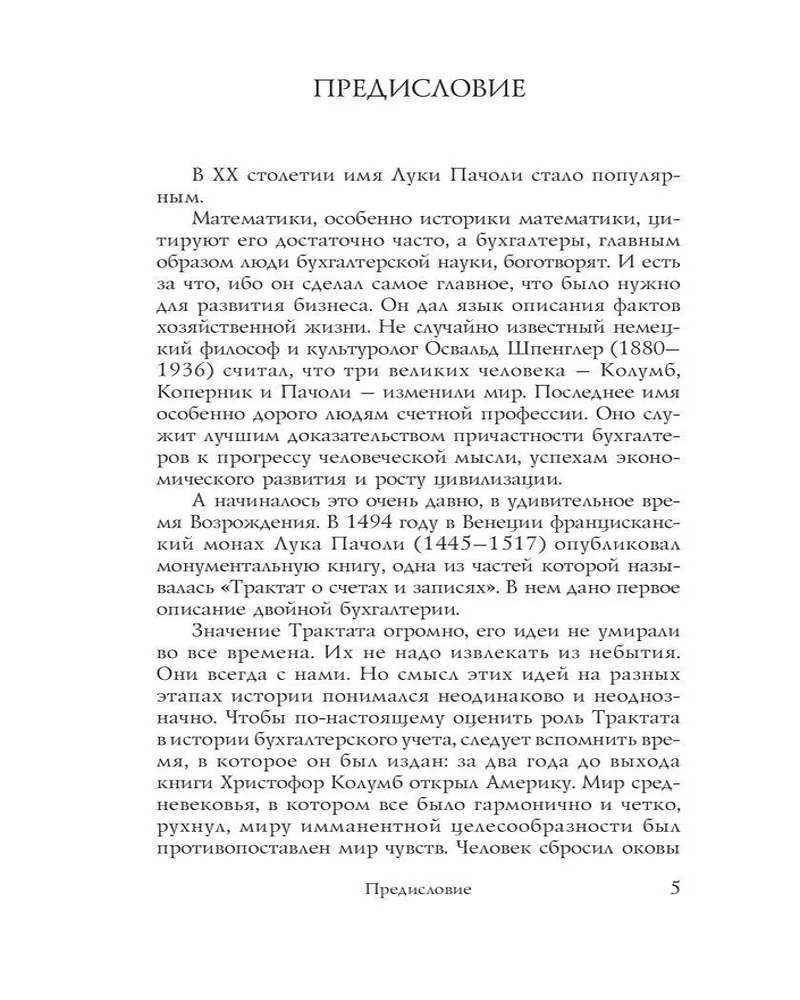 Перед вами — первая книга, в которой изложены методологические основы бухгалтерского учета. Ее написал выдающийся ученый XV века — монах и математик Лука Пачоли. Известный теоретик-экономист Вернер Зомбарт (1863-1941) замечал, что «двойная бухгалтерия родилась из того же духа, что и системы Галилео и Ньютона. В ней можно увидеть идеи всемирного тяготения, кровообращения, сохранения энергии». В самом деле, все эти великие открытия человеческой мысли, наряду с двойной бухгалтерией, есть проявление той «Божественной пропорции», о которой столь ярко отзывался Лука Пачоли в своей замечательной книге. |
