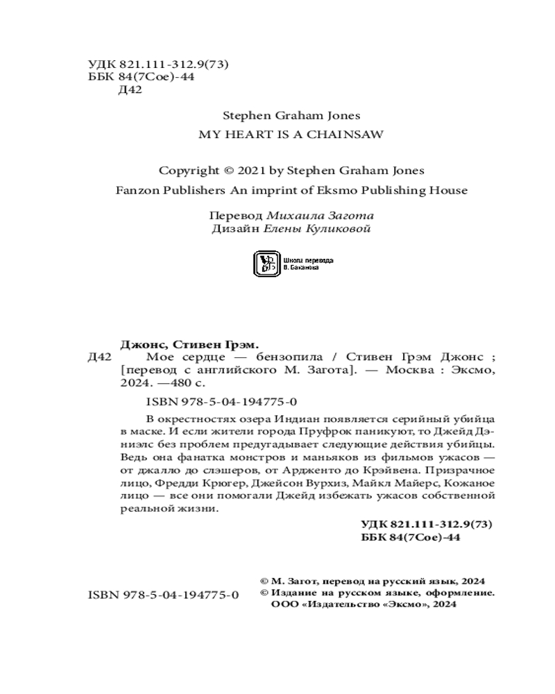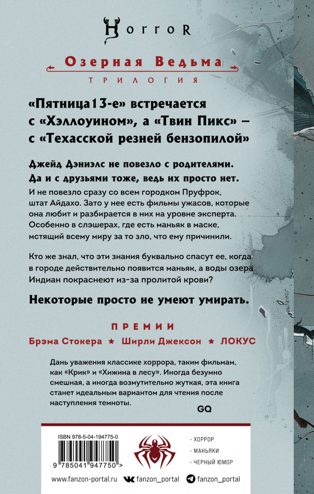 💳 Оплатить за товар можно при получении 🇰🇿 Есть бесплатная доставка по Казахстану от 1 дня 🎁 Копите бонусы с каждой покупки Серия: Fanzon. Территория страха У Джейд Дэниэлс нет матери, отец жесток, а окружающим на нее просто наплевать. Есть причина озлобиться на город Пруфрок и его жителей. И еще большая причина — погрузиться в собственный мир фантазий, источником которых являются фильмы ужасов... особенно те, в которых маньяк в маске мстит за причинённое зло. Джейд знает эти фильмы буквально наизусть, помнит все сценарные ходы, героев и историю создания каждого хоррора. |