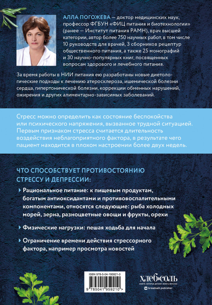 💳 Оплатить за товар можно при получении 🇰🇿 Есть бесплатная доставка по Казахстану от 1 дня 🎁 Копите бонусы с каждой покупки Серия: Кулинария. Еда для здоровой жизни. Рецепты от специалистов-диетологов Стресс — это то, с чем сталкивается каждый современный человек. Сначала он пытается не замечать его, потом обращается к врачу, потом поедает килограммы таблеток, которые помогают лишь на короткое время. И лишь осознав, что от стресса не убежишь, начинает менять свое мнение о нем. Эта книга поможет не только понять, отчего возникает стресс, его причины и неприятные последствия, но и укажет самый жизненный способ борьбы с ним, преодоления его и выработки устойчивости по отношению к нему. И этот способ — знание, как питаться, чтобы не накапливать в себе негатив; какие продукты облегчают его действие, какие предотвращают. Алла Погожева, доктор медицинских наук, профессор Института питания, проработавшая в нем более 30 лет, предлагает без всяких диет поправлять свое душевное здоровье с помощью баланса в питании, подвижности в повседневной жизни и ограничения негативных новостных факторов. Более 100 рецептов дают практическую возможность испробовать этот простой способ борьбы с неблагоприятными ситуациями у себя дома. |