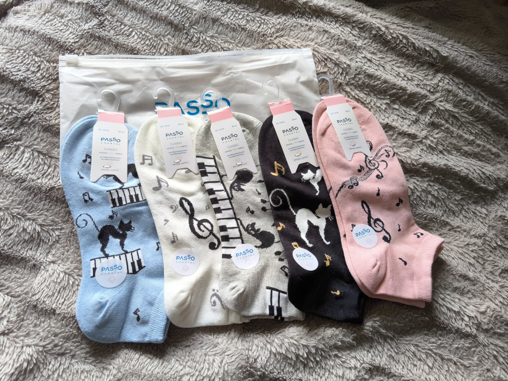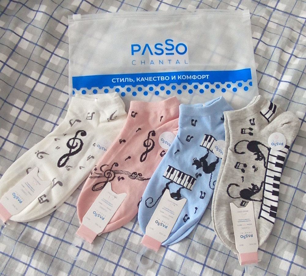 Рада знакомству с маркой passo chantal. Набрала три разных набора. Объединяет их приятная плотность изделия. Хорошо сидят но ногах. Именно эти тонкие, подойдут для лета. Чувствуется высокое содержание хлопка в составе, при этом лайкра сохранит форму. Симпатичные принты. Девчонкам понравятся