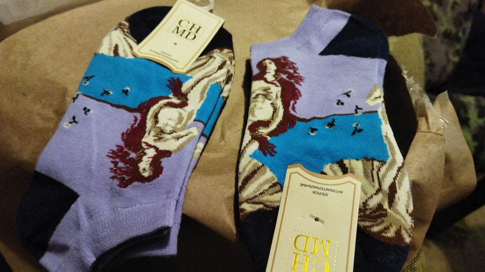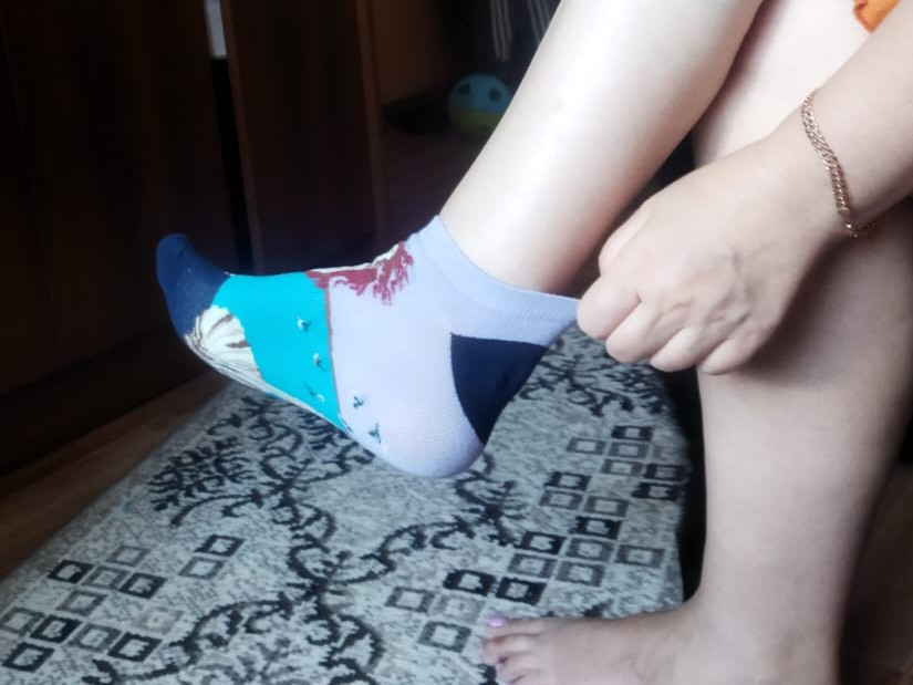 Носочки хорошие, не тонкие. На мой 38-39 как раз. Звезду сняла за комплектацию, она не соответствует заявленной, из пяти пар - две одинаковые.