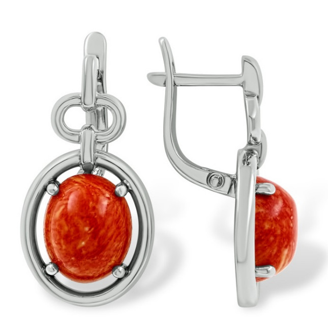 Костромской ювелирный завод Серьги из серебра с кораллами