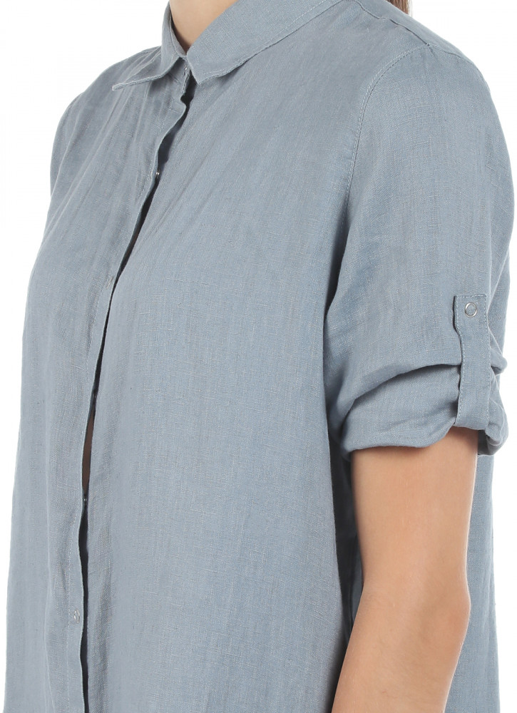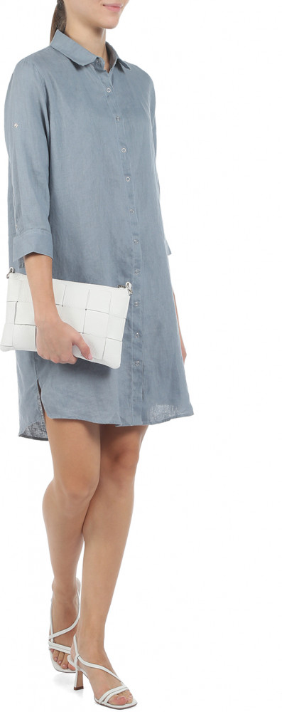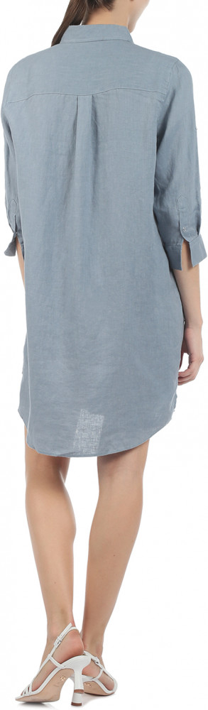 Платье-рубашка свободного прямого кроя на кнопках. Длина выше уровня колен. Длина рукава регулируется патой с застежкой. Носить можно как в сочетании с широким ремнем, так и в виде туники с узкими брюками. Вещь комфортная в носке, с хорошим воздухообменом.