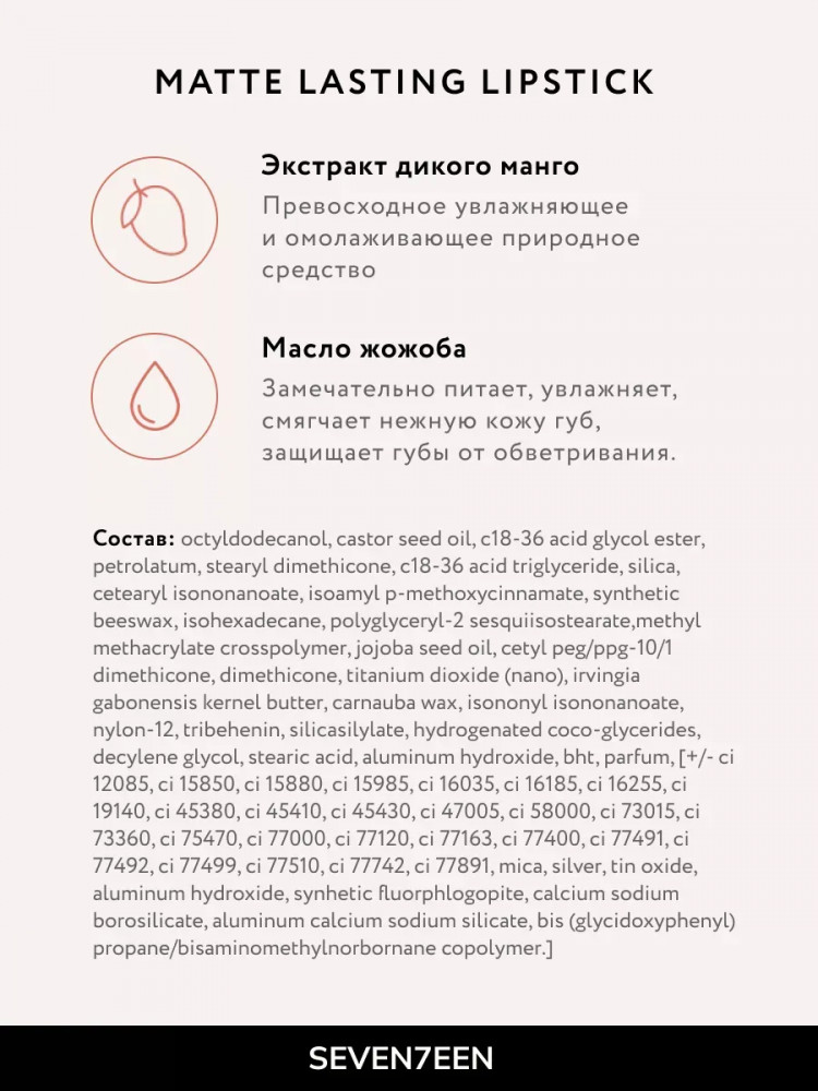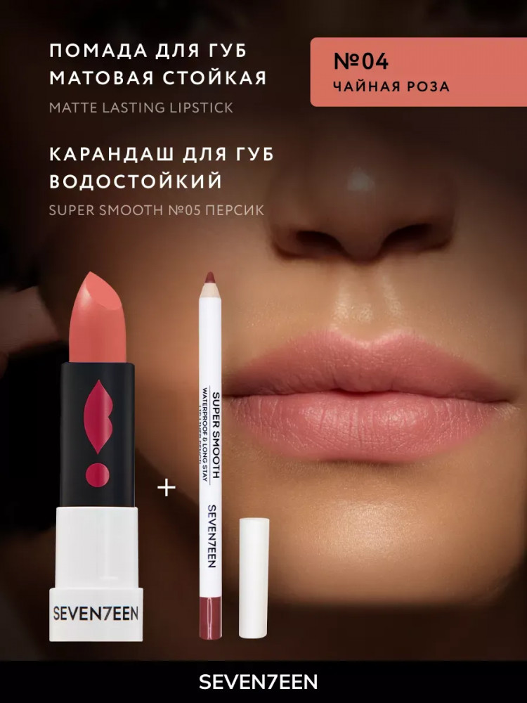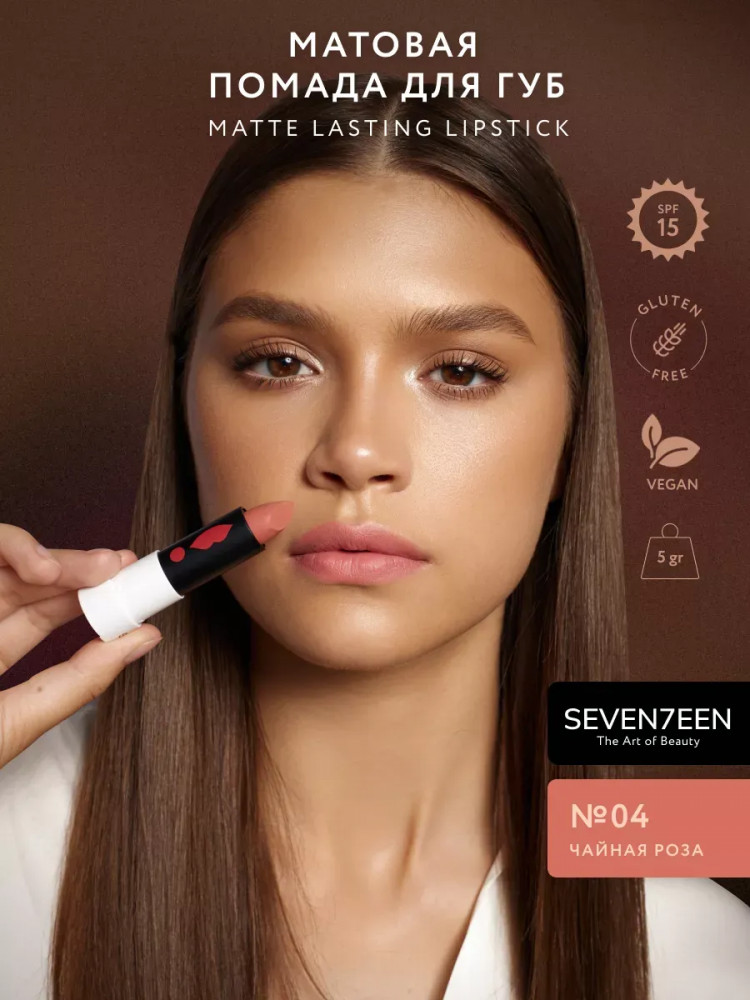 SEVEN7EEN Помада для губ устойчивая матовая «Matte lasting lipstick» SPF 15, тон 04 Чайная роза