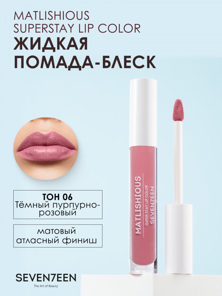SEVEN7EEN Помада-блеск жидкая для губ «Matlishious super stay lip color», тон 06 Темный пурпурно-розовый