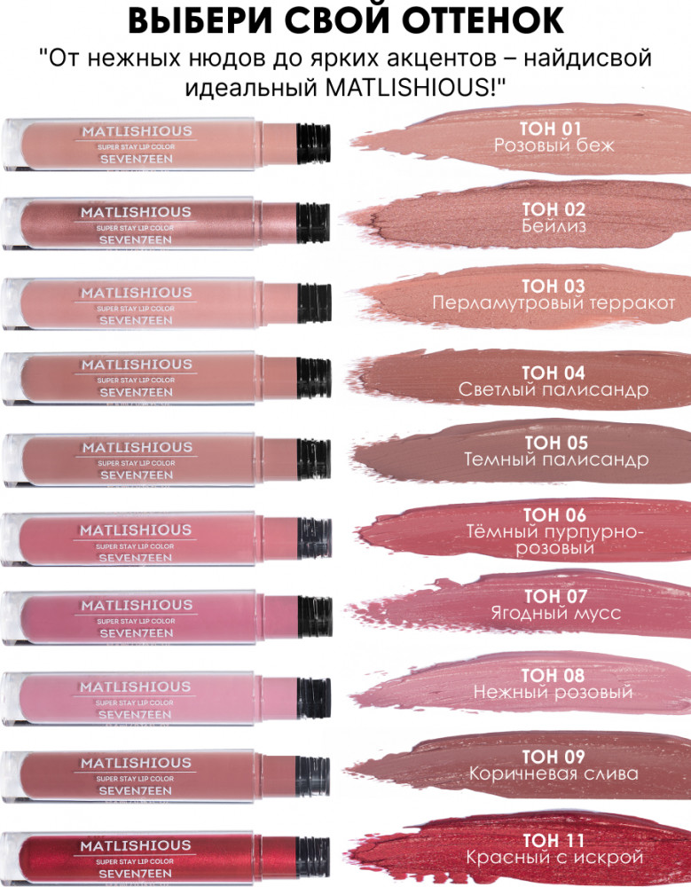 Отзывы «Помада-блеск жидкая для губ «Matlishious super stay lip color», тон 06 Темный пурпурно-розовый»
