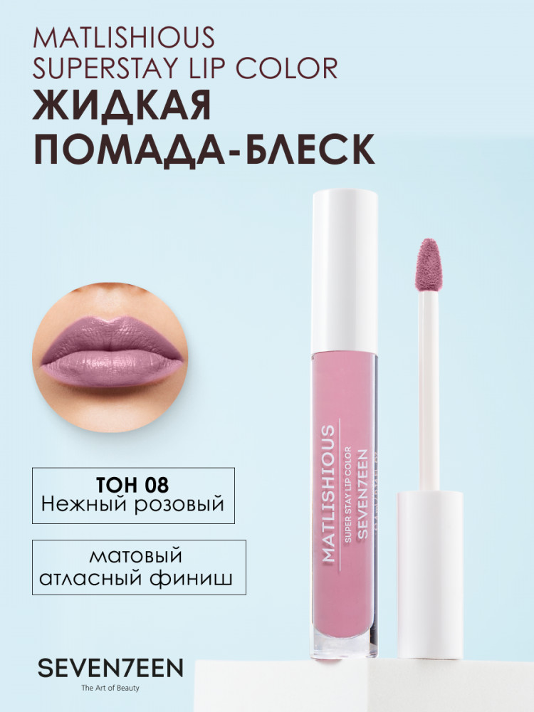 SEVEN7EEN Помада-блеск жидкая для губ «Matlishious super stay lip color», тон 08 Нежный розовый