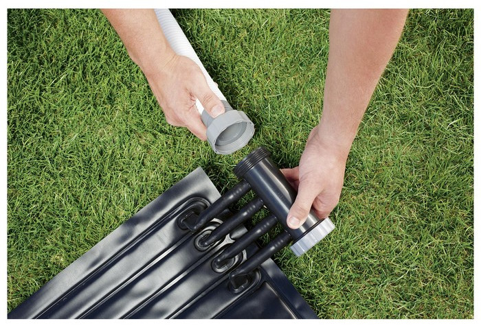 💳 Оплатить за товар можно при получении 🇰🇿 Есть бесплатная доставка по Казахстану от 1 дня 🎁 Копите бонусы с каждой покупки Коврик предназначен для нагрева воды в уличном бассейне. Коврик подключается к фильтр-насосу и пропускает воду через каналы, в бассейн поступает уже нагретая вода. |