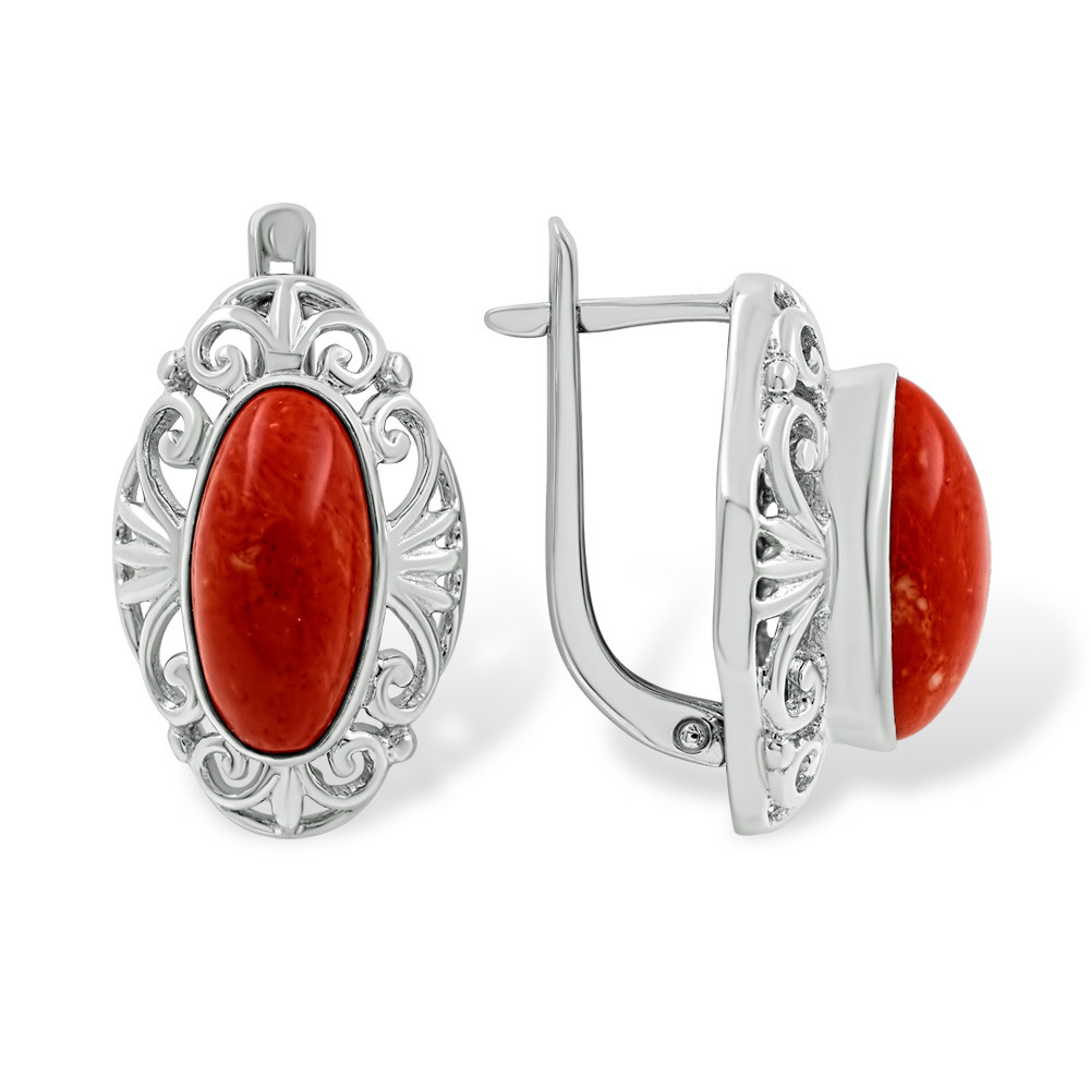 Костромской ювелирный завод Серьги из серебра с кораллами