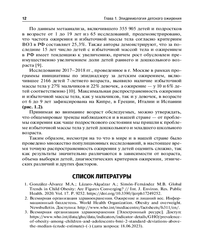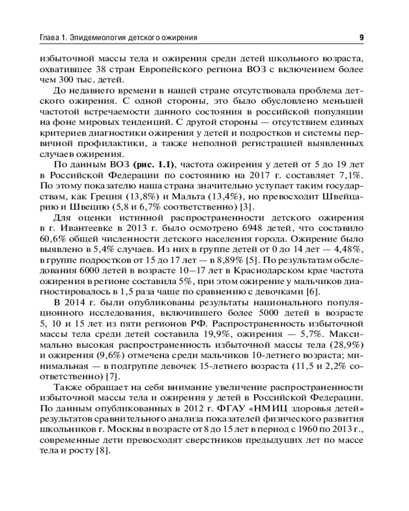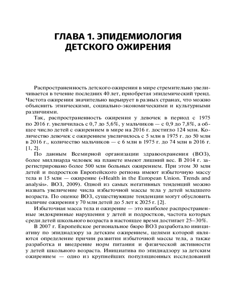 В руководстве изложена актуальная информация о проблеме детского ожирения. Представлены сведения об эпидемиологии и патогенезе ожирения у детей, основных метаболических нарушениях и заболеваниях, ассоциированных с ожирением. Особое внимание уделено определению основного обмена и способам оценки композиционного состава тела при ожирении у детей. Рассмотрены современные подходы к лечению ожирения и его профилактике.  |