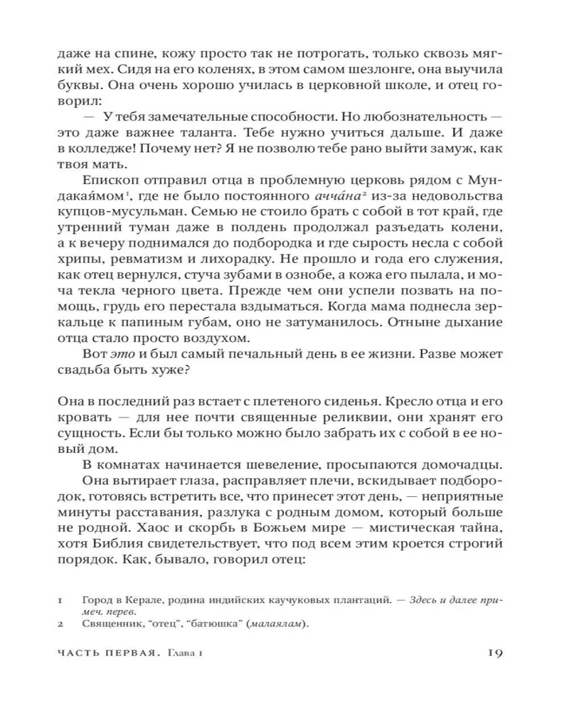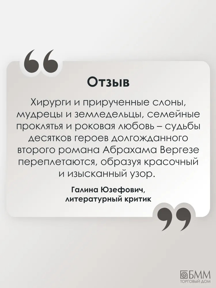 💳 Оплатить за товар можно при получении 🇰🇿 Есть бесплатная доставка по Казахстану от 1 дня 🎁 Копите бонусы с каждой покупки Новый роман автора «Рассечения Стоуна», сразу после выхода американского издания ставший одним из главных бестселлеров. Эпическая история о людях, Индии и медицине. Южная Индия, семейные тайны; слоны, запросто приходящие в гости пообедать; таинственные духи, обитающие в подполье; медицина, ее романтика и грубая реальность; губительные страсти и целительная мудрость. А еще приключения, мечты, много красок, звуков, света, человеческих историй, вплетенных в историю Индии. Все начинается в 1900 году, а заканчивается в конце 1970-х, хотя на самом деле совсем не заканчивается. История нескольких поколений семьи индийских христиан из Кералы, удивительным образом связанная с историей врача-шотландца родом из Глазго, которого судьба занесла в Индию. Но все же роман Абрахама Вергезе — это не просто семейная сага в экзотических декорациях. Это мудрый и добрый рассказ о том, что семью создает не кровное родство, а общность судьбы; что выбор есть всегда, но не всегда есть силы его совершить; что все мы навеки связаны друг с другом своими действиями и бездействием и что никто не остается в одиночестве. |