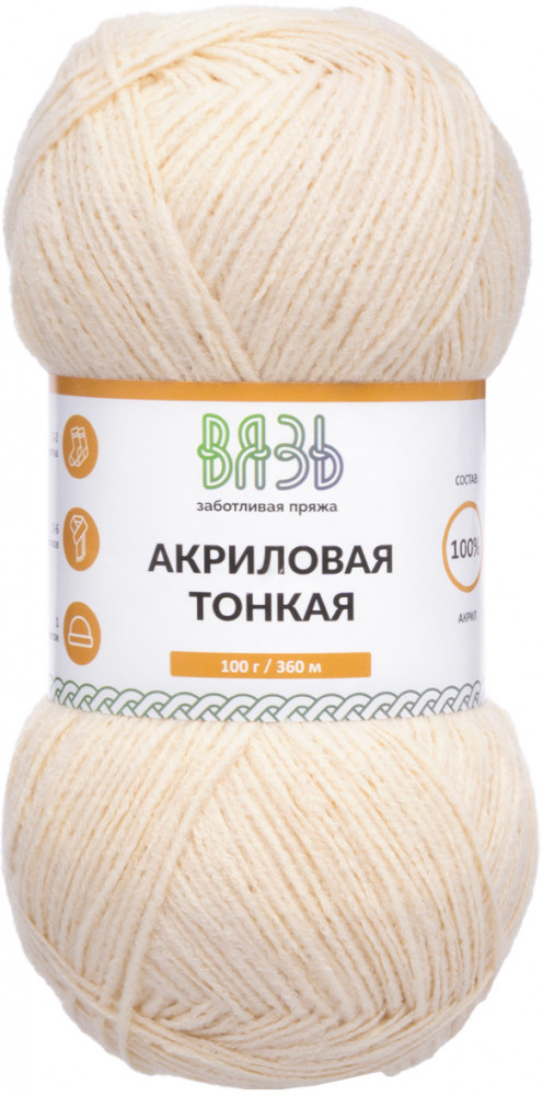 Вязь Пряжа для вязания «Акриловая тонкая», 808 топленое молоко