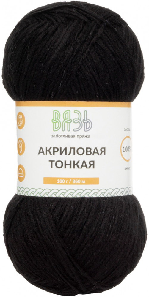 Вязь Пряжа для вязания «Акриловая тонкая», 990 черный