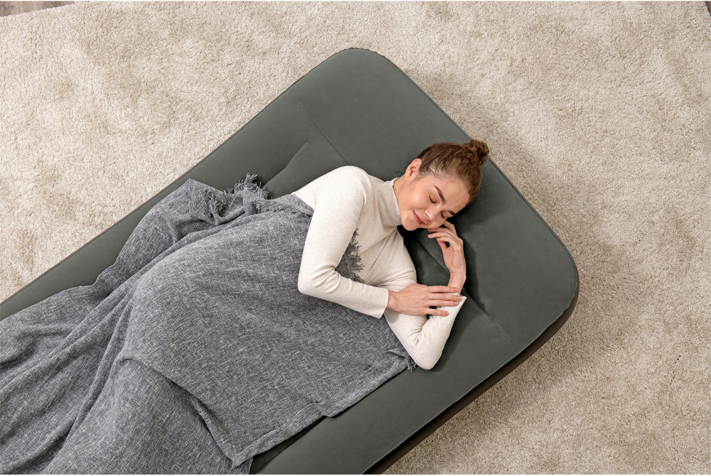 Приятное флокированное покрытие верхней поверхности кровати, не даст соскальзывать постельному белью и покрывалам, легко чистится без применения специальных средств. В комплект входит специализированная самоклеющаяся заплатка для ремонта.