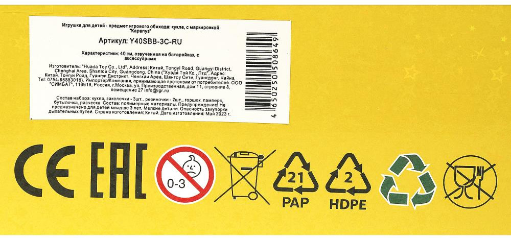 Карапуз Кукла интерактивная «Малышка»-35% +698