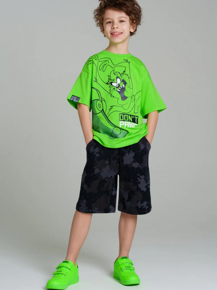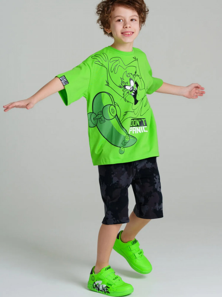 Комплект: футболка и шорты из качественного эластичного и приятного на ощупь трикотажа. Футболка oversize. Брюки comfort fit. На шортах эластичный пояс со шнурком. Карманы в боковых швах. Высокое содержание хлопка 95%. Благодаря наличию эластана в составе ткани изделие держит форму и меньше мнется.