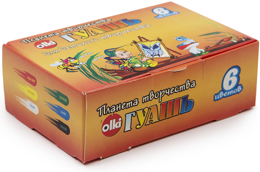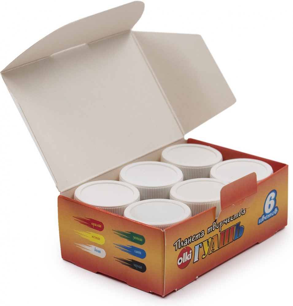 Olki Набор гуаши художественной «Планета творчества»В данный момент этот товар отсутствует в продаже. Возможно, у нас найдется аналогичный или похожий товар здесь. Серия: Планета творчества Гуашь в наборе художественная от Olki — плотная непрозрачная краска с высокой укрывистостью. Имеет насыщенные цвета, после высыхания сохраняет яркость, становится матовой и бархатистой. Если требуется более мягкий оттенок, краску легко разбавить водой. Хорошо ложится на бумагу, картон, фанеру, а также грунтованный холст. Подходит в том числе для детского творчества. Сочетается с акварелью, акрилом, пастелью и другими красками, которые растворяются в воде. Полностью высыхает в среднем через 1,5 — 2 часа после нанесения. |