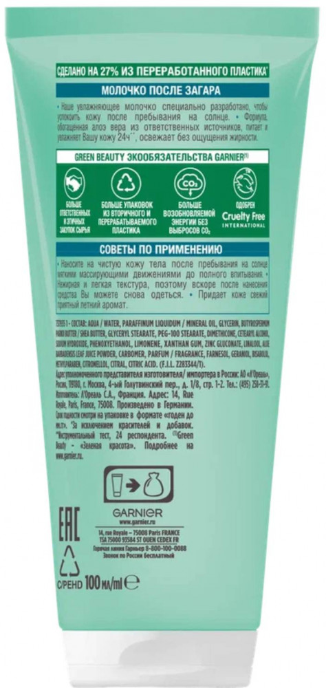 Garnier Молочко после загара успокаивающее+127 удобно в дороге впитывается