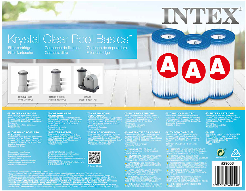 Фильтрующий картридж Krystal Clear от Intex® поможет сохранить воду в вашем бассейне чистой и прозрачной. Этот сменный картридж предназначен для картриджных фильтрующих насосов. Они легко очищаются, а при использовании с насосом отсеивают грязь и мелкий мусор из бассейна. Bestway® рекомендует менять их каждые 2-3 недели для достижения лучших результатов (при условии мойки раз в два-три дня). Тип картриджа — A (III).
