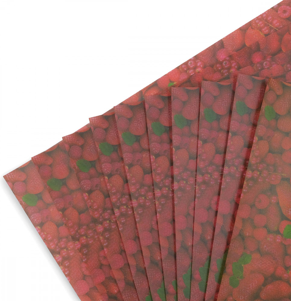 Транспарентная бумага — полупрозрачная бумага с рисунком. Хорошо держит форму, рисунок не стирается от трения и не пачкает руки. Таким материалом в основном оформляют коробки с подарками.