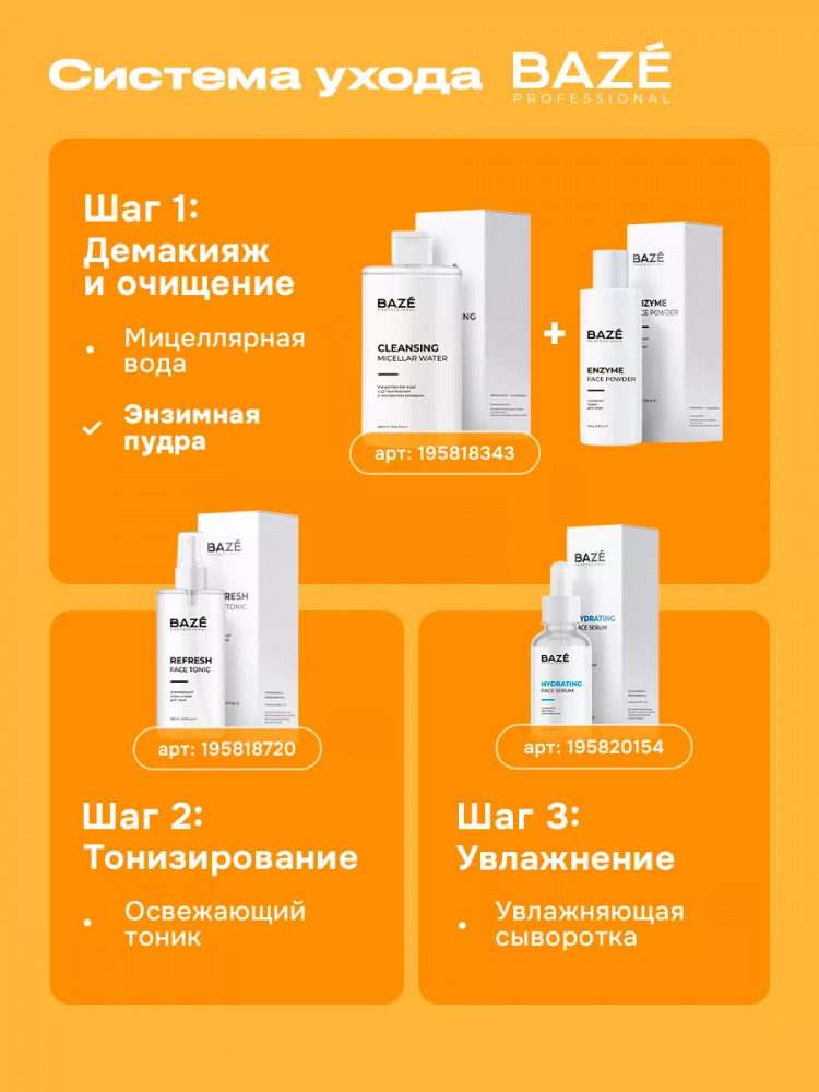Baze Пудра энзимная «Enzyme face powder»В данный момент этот товар отсутствует в продаже. Возможно, у нас найдется аналогичный или похожий товар здесь. Серия: Professional Среди активов пудры — папаин, экстракт ананаса, азелаиновая кислота и морской коллаген, которые эффективно очищают кожу от излишков себума, борются с высыпаниями и черными точками. |