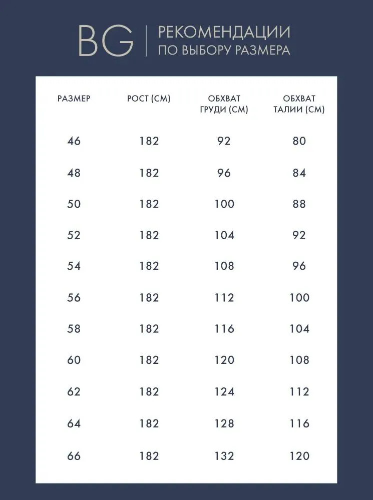 Карта размеров
