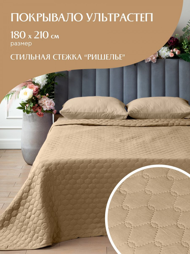 Покрывало стеганое ультрастеп на кровать. Это идеальное сочетание цены и качества. Покрывала изготовлены из приятной на ощупь микрофибры и простеганы ультрастепом. Способ стежки — ультрастеп (термостежка) в виде косичек. Покрывало евро отлично смотрится на любой мебели, гипоаллергенно, не дает усадки, моментально сохнет. Покрывало двустороннее, края окантованы цветной тесьмой в цвет покрывала.
