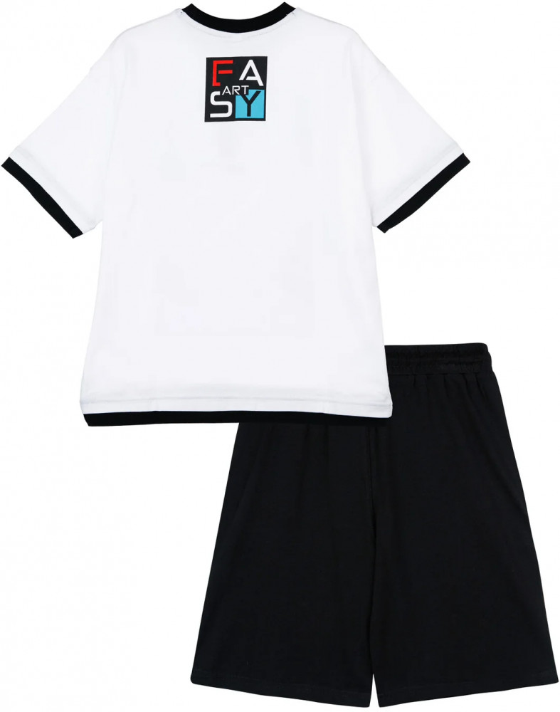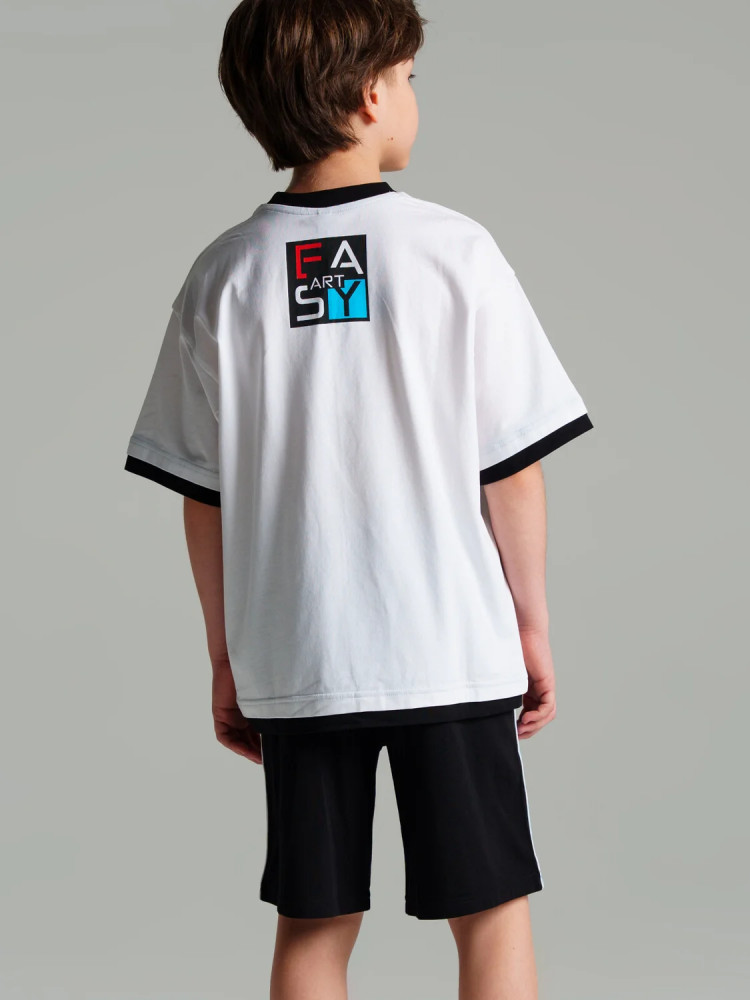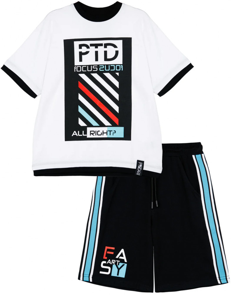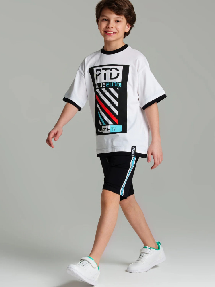 Комплект: футболка и шорты из качественного эластичного и приятного на ощупь трикотажа. Посадка comfort fit — свободный крой. На шортах эластичный пояс со шнурком. Высокое содержание хлопка 95%. Благодаря наличию эластана в составе ткани изделие держит форму и меньше мнется.
