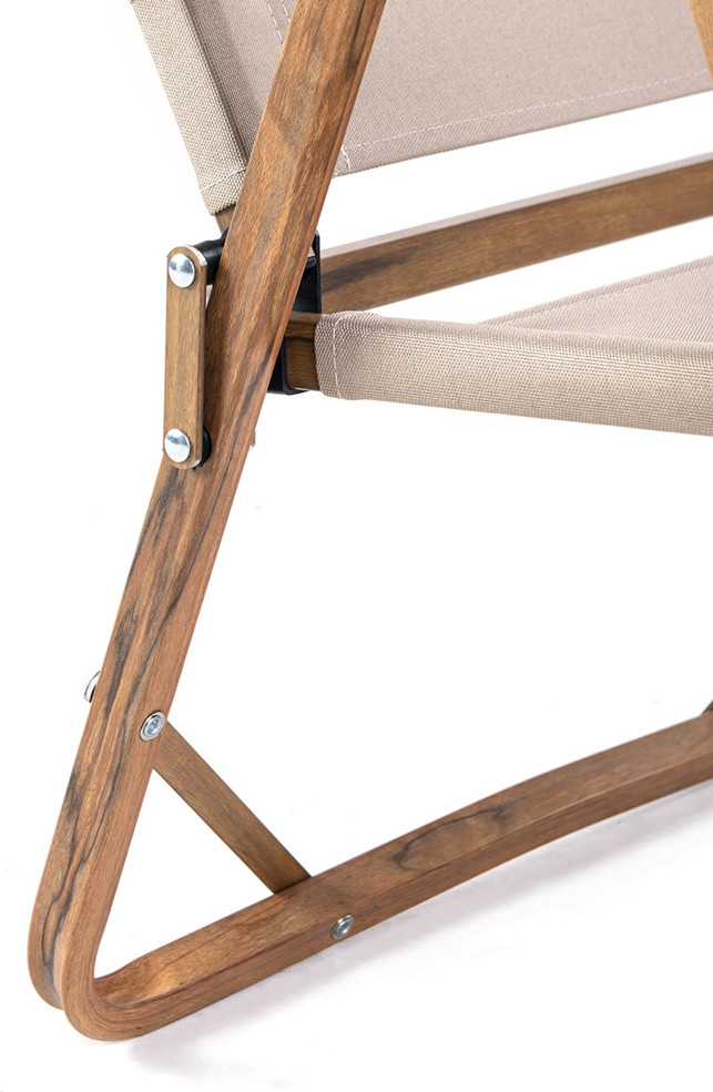 Устойчивая перекрестно-опорная конструкция изготовлена из алюминиевого сплава. Стул выдерживает вес до 120 кг. Дышащая ткань Оксфорд приятна для кожи, легко поддается чистке и долго сохраняет оригинальный внешний вид. Подлокотники изготовлены из бука, добавляют креслу лаконичный вид.