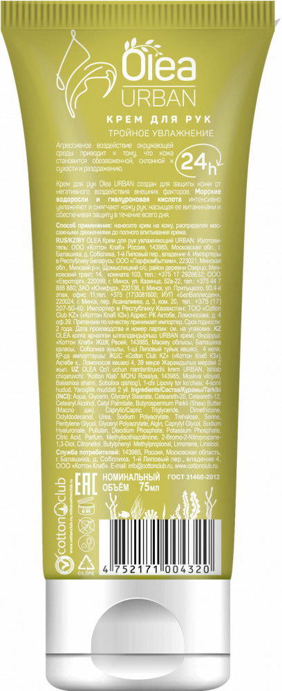 Olea Крем для рук «Тройное увлажнение»+28 нет недостатков объём меньше