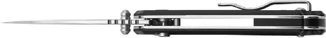Раскрытие клинка происходит с помощью шпенька. Лезвие распахивается при помощи большого пальца и легкого взмаха запястьем. Благодаря замку Button Lock модель не раскрывается в кармане и защищена от случайного закрытия во время силовой нагрузки. Модель не только удобна в управлении, но и имеет компактные размеры. Общая длина в раскрытом виде составляет 15,5 сантиметров. В конструкцию ножа добавлена металлическая клипса, которая помогает зацепить нож за карман или на ремень.