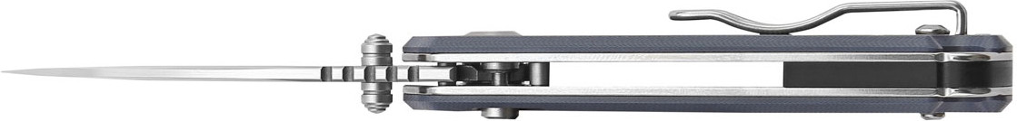 Раскрытие клинка происходит с помощью шпенька. Лезвие распахивается при помощи большого пальца и легкого взмаха запястьем. Благодаря замку Button Lock модель не раскрывается в кармане и защищена от случайного закрытия во время силовой нагрузки. Модель не только удобна в управлении, но и имеет компактные размеры. Общая длина в раскрытом виде составляет 15,5 сантиметров. В конструкцию ножа добавлена металлическая клипса, которая помогает зацепить нож за карман или на ремень.