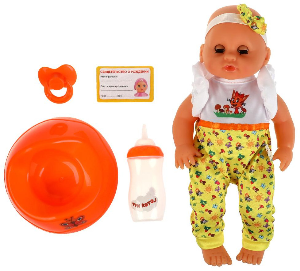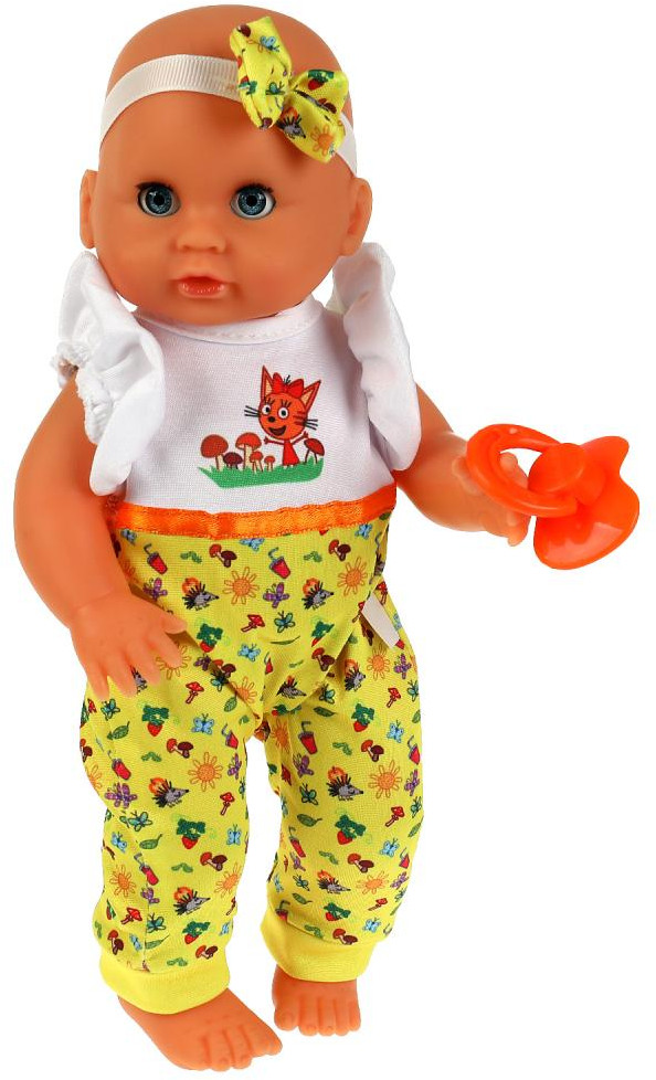 💳 Оплатить за товар можно при получении 🇰🇿 Есть бесплатная доставка по Казахстану от 1 дня 🎁 Копите бонусы с каждой покупки Серия: Три кота Этот милый пупс, с детально проработанным личиком, обязательно понравится вашей малышке. Куколка одета в симпатичный яркий костюмчик с принтом в тематике мультсериала. На голове симпатичная повязка с бантиком. Одежда легко надевается и снимается. С таким пупсом девочка может играть в самые разные игры, гулять с ней, петь песни, кормить, переодевать, рассказывать сказки и укладывать спать. Игра с интерактивным пупсом учит ребёнка заботиться об окружающих, быть ответственным и внимательным, а также развивает: воображение, память, внимание, звуковое восприятие и музыкальный слух, социально-коммуникативные навыки. Развивающая интерактивная кукла «Три кота. Малышка» станет прекрасным подарком для вашей принцессы. |