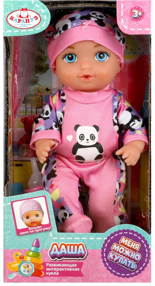 Карапуз Пупс «Даша»В данный момент этот товар отсутствует в продаже. Возможно, у нас найдется аналогичный или похожий товар здесь. Этот милый пупс обязательно понравится вашей малышке. Куколка одета в красочный комбинезон с принтом в виде панд. На голове - шапочка с ушками в тон. Одежда легко снимается и надевается. Очаровательный пупс непременно вдохновит девочку на множество интересных сюжетов для игр, тем более его можно купать в воде, кормить и сажать на горшок. Благодаря компактному размеру игрушку можно повсюду брать с собой. Игра с пупсом учит ребёнка заботиться об окружающих, быть ответственным и внимательным, а также развивает воображение, память, социально-коммуникативные навыки, моторику. |