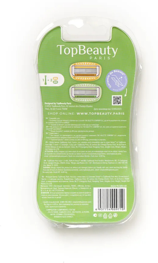 TopBeauty Paris Станок бритвенный со сменными кассетамиВ данный момент этот товар отсутствует в продаже. Возможно, у нас найдется аналогичный или похожий товар здесь. Topbeauty paris женская бритва 1 станок и 2 сменные кассеты совместима Gillette Venus. Почувствуй магию Франции в своих руках с бритвой TopBeauty Paris! Мы знаем, что красота и уход за собой отнимают много твоего времени и сделали процесс максимально быстрым и безопасным. Благодаря нескользящей ручке бритье становится комфортным. Смазывающая полоска «Bio Sensitive» позволяет достичь гладкости в одно движение и защищает кожу. Острые лезвия с накладкой «Smooth Shave» не травмируют твою кожу и обеспечивает защиту, там где она необходима больше всего. В упаковку входит 1 бритва и 2 сменные кассеты. |