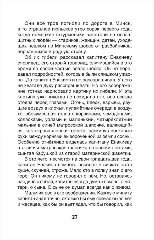 💳 Оплатить за товар можно при получении 🇰🇿 Есть бесплатная доставка по Казахстану от 1 дня 🎁 Копите бонусы с каждой покупки Серия: Внеклассное чтение Одно из самых ярких и пронзительных произведений о Великой Отечественной войне — повесть Валентина Катаева о судьбе сироты на фронте. Она входит в золотой фонд русской художественной литературы и обязательную школьную программу по чтению. «Сын полка» — первая в советской литературе книга, показывающая войну глазами ребенка. Главный герой, мальчик Ваня Солнцев, потерял родных, долгое время скитался по лесам и деревням, был спасен разведчиками. Несмотря на жестокие испытания судьбы, мальчик не теряет силы духа и мечтает воевать за Родину наравне со взрослыми. Трогательная история Вани Солнцева расскажет читателю о том, что даже в самых тяжелых и опасных обстоятельствах всегда есть место человечности, состраданию, мужеству и надежде. |