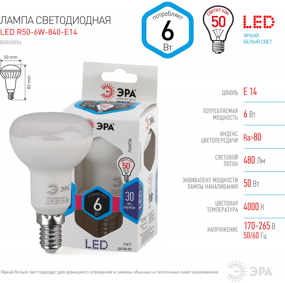 Эра Лампа светодиодная+10