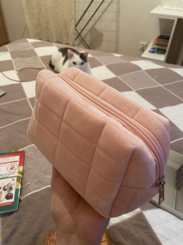 Косметичка женская пушистая- это оригинальный и стильный аксессуар для любого повода. С такой яркой и модной плюшевой женской косметичкой вы не останетесь без внимания. Небольшого размера, но в то же время очень вместительная. Отличный органайзер для хранения косметики, аксессуаров для волос, украшений, средств личной гигиены. Можно использовать как маленькую детскую сумочку для принадлежностей ребенка, игрушек, средств защиты и как пенал для школьной канцелярии (ручек, карандашей, фломастеров). Практичная тканевая дорожная сумка для душа, которую удобно брать с собой в дорогу, на прогулку, в поездку, путешествие или положить в чемодан. Изготовлена косметичка из качественных и натуральных материалов. Внешняя ткань состоит из натурального хлопка (вельвета), очень мягкая и плюшевая. Качественная и удобная молния по всей длине косметички. При необходимости несессер можно постирать руками.