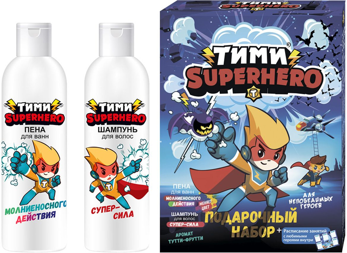 Подарочный набор для детей Superhero с расписанием для уроков и занятий, шампунем, пеной для душа и ванной с ароматом тутти-фрутти станет отличным подарком для мальчика! |