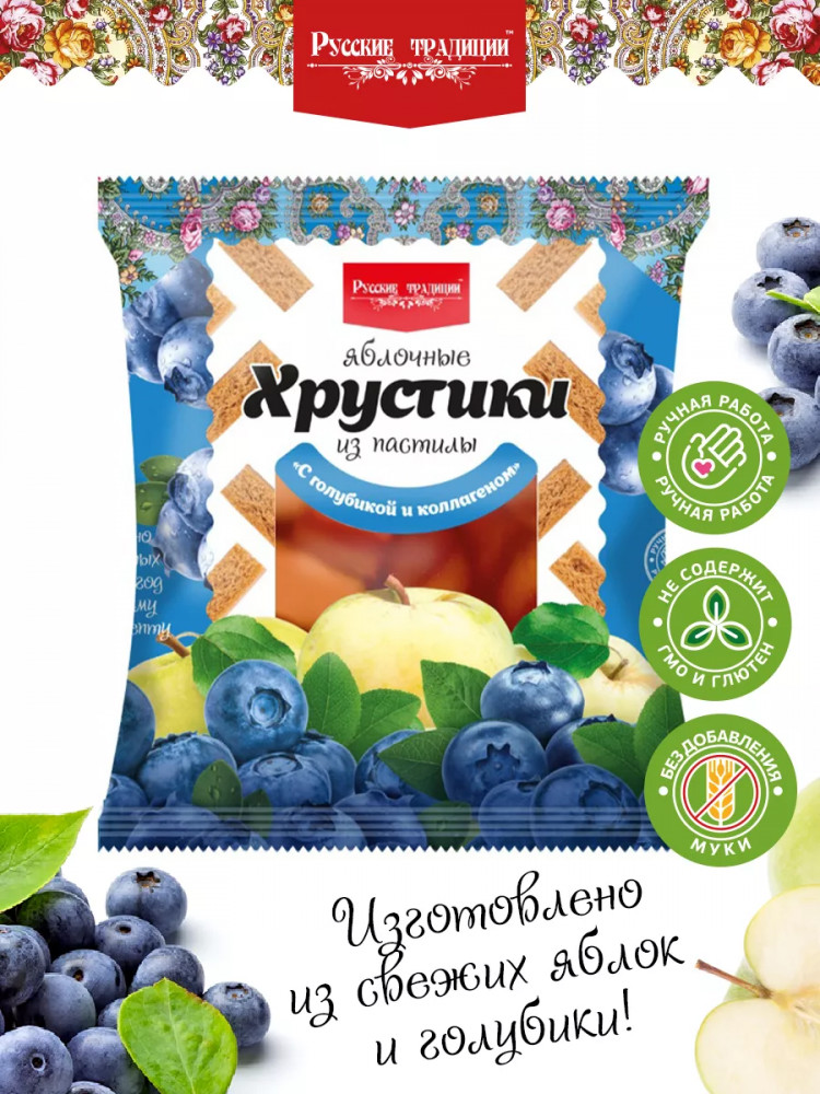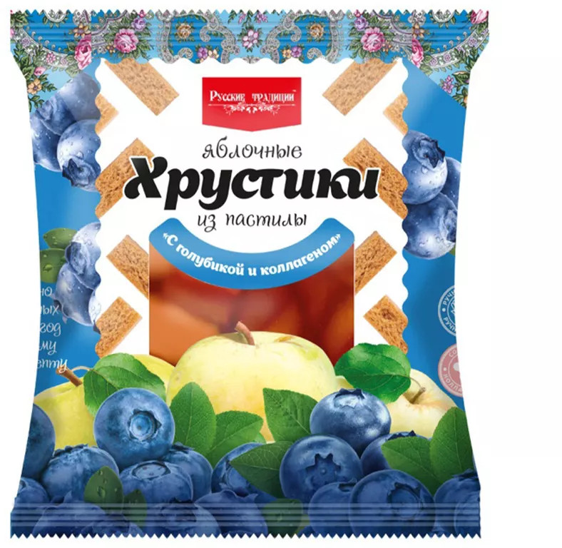 Русские традиции Хрустики яблочные из пастилы «Голубика с коллагеном»