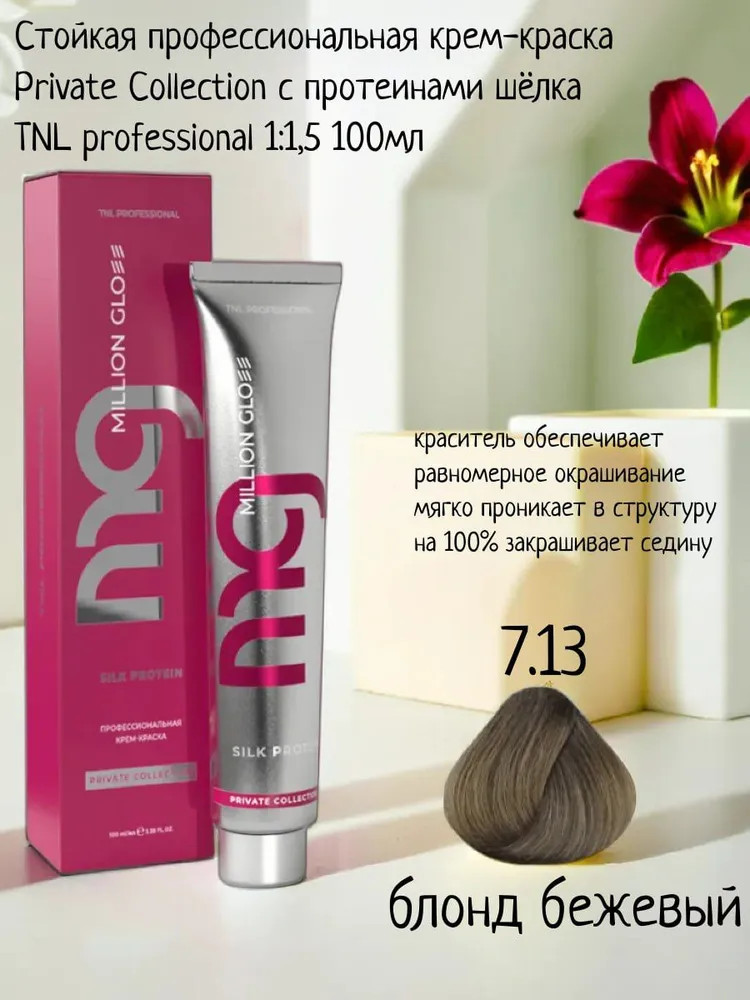 TNL Professional Крем-краска для волос с протеинами шёлка, оттенок 7.13 Блонд бежевый