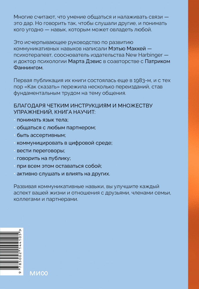 💳 Оплатить за товар можно при получении 🇰🇿 Есть бесплатная доставка по Казахстану от 1 дня 🎁 Копите бонусы с каждой покупки Серия: Психология для устойчивого развития Многие считают, что способность к ораторству — это дар. Но уметь слушать других и говорить так, чтобы слушали они, — навык, и им может овладеть любой. Книга «Как сказать» написана в соавторстве сооснователем издательства New Harbinger, психологом и профессиональным писателем психологических книг и с 1983-го года прошла несколько переизданий. |
