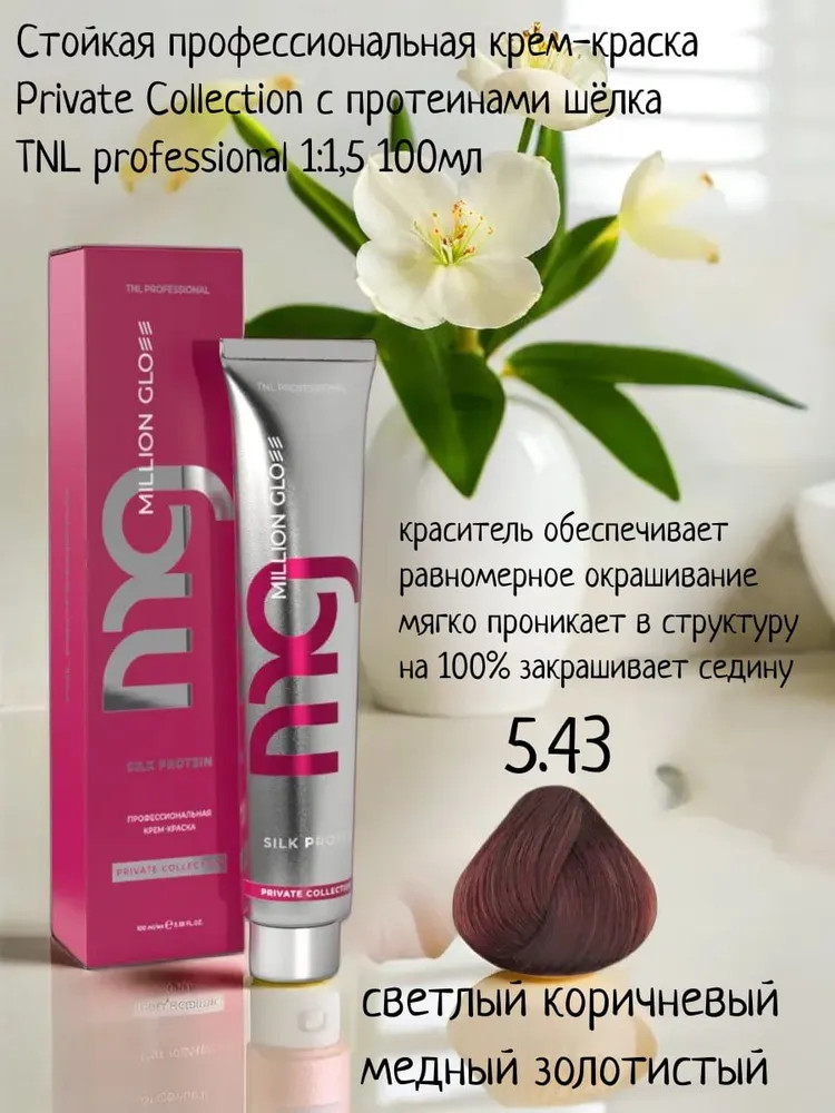 TNL Professional Крем-краска для волос с протеинами шёлка, оттенок 5.43 Светлый коричневый медный золотистый