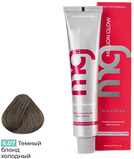 TNL Professional Крем-краска для волос с протеинами шёлка, оттенок 6.07 Темный блонд холодный