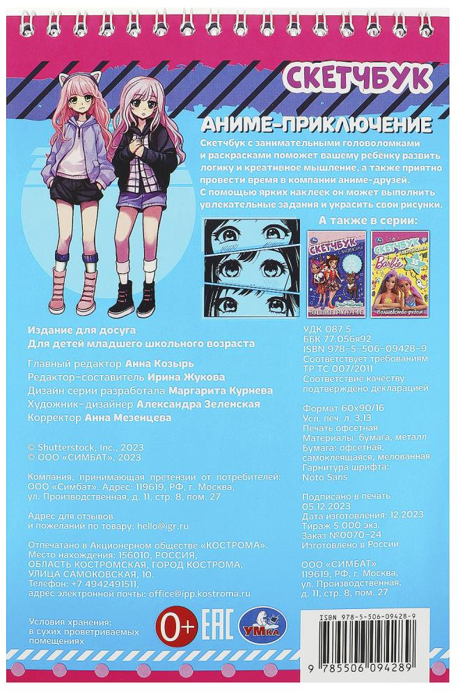 УМка Скетчбук с наклейками «Аниме-приключение»-35%